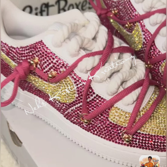 Elevate your style with these Full Bling Custom Air Force 1s, dazzlingly covered in sparkling rhinestones. Choose your favorite color theme to create a one-of-a-kind statement piece that turns heads wherever you go. Perfect for those who want to stand out with luxury and personalized flair, these sneakers combine iconic design with eye-catching shine for unmatched streetwear appeal.
